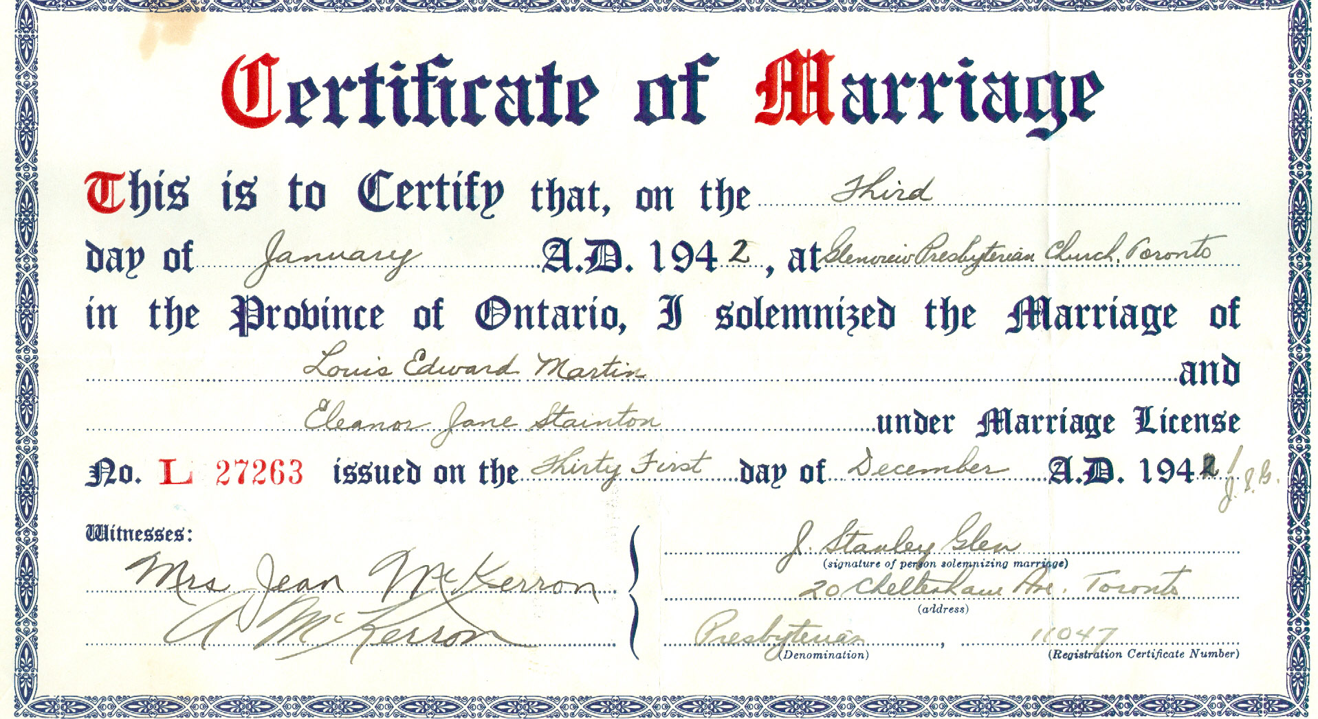 Louis & Eleanor Martin (31 Dec 1941). Børge & Mary Jørgensen (11 Nov 1942).