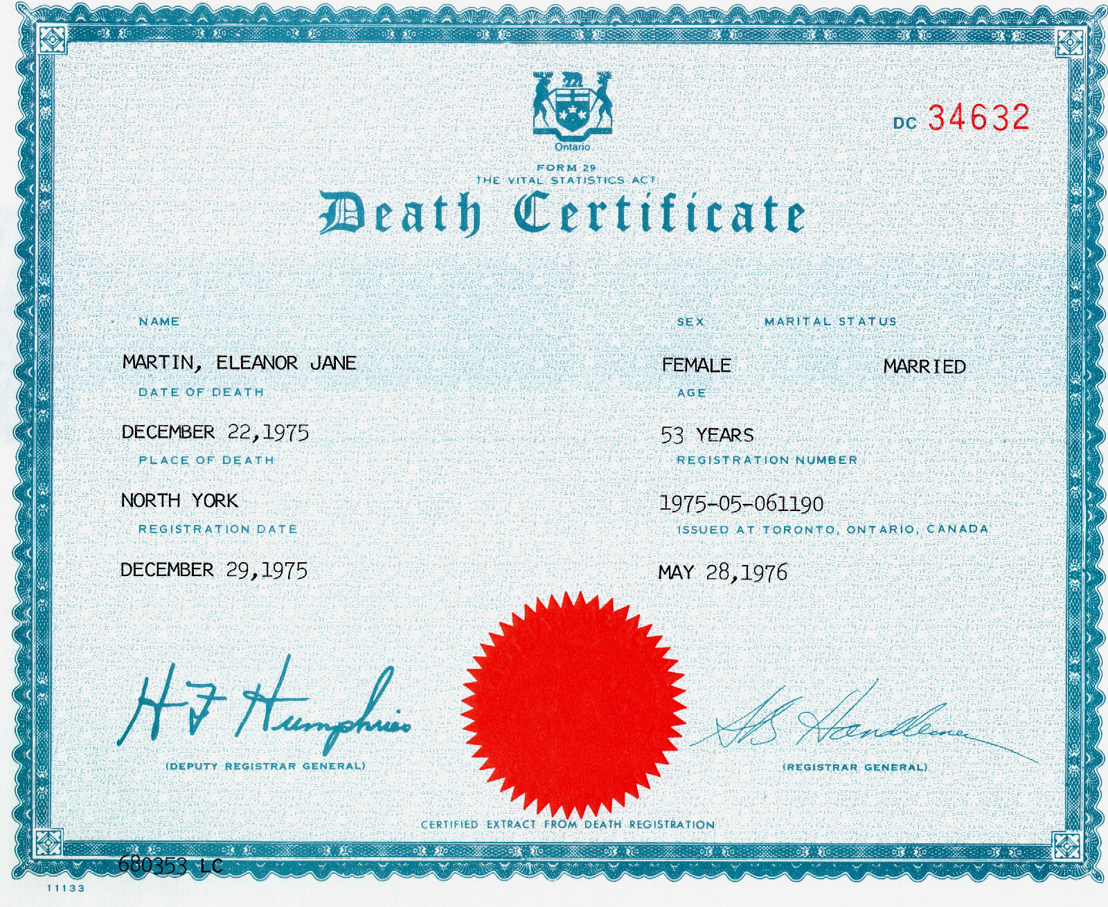 15 November 1983, Toronto. Age 103. 23 grandchildren, 55 great-grandchildren.
