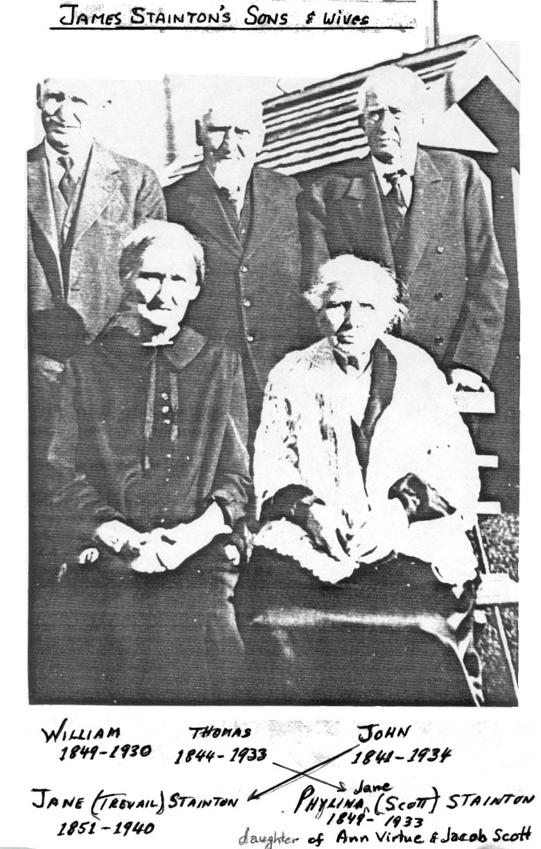 The earliest photographed members of the Stainton and Scott families, including Irish immigrants from the 1800s.